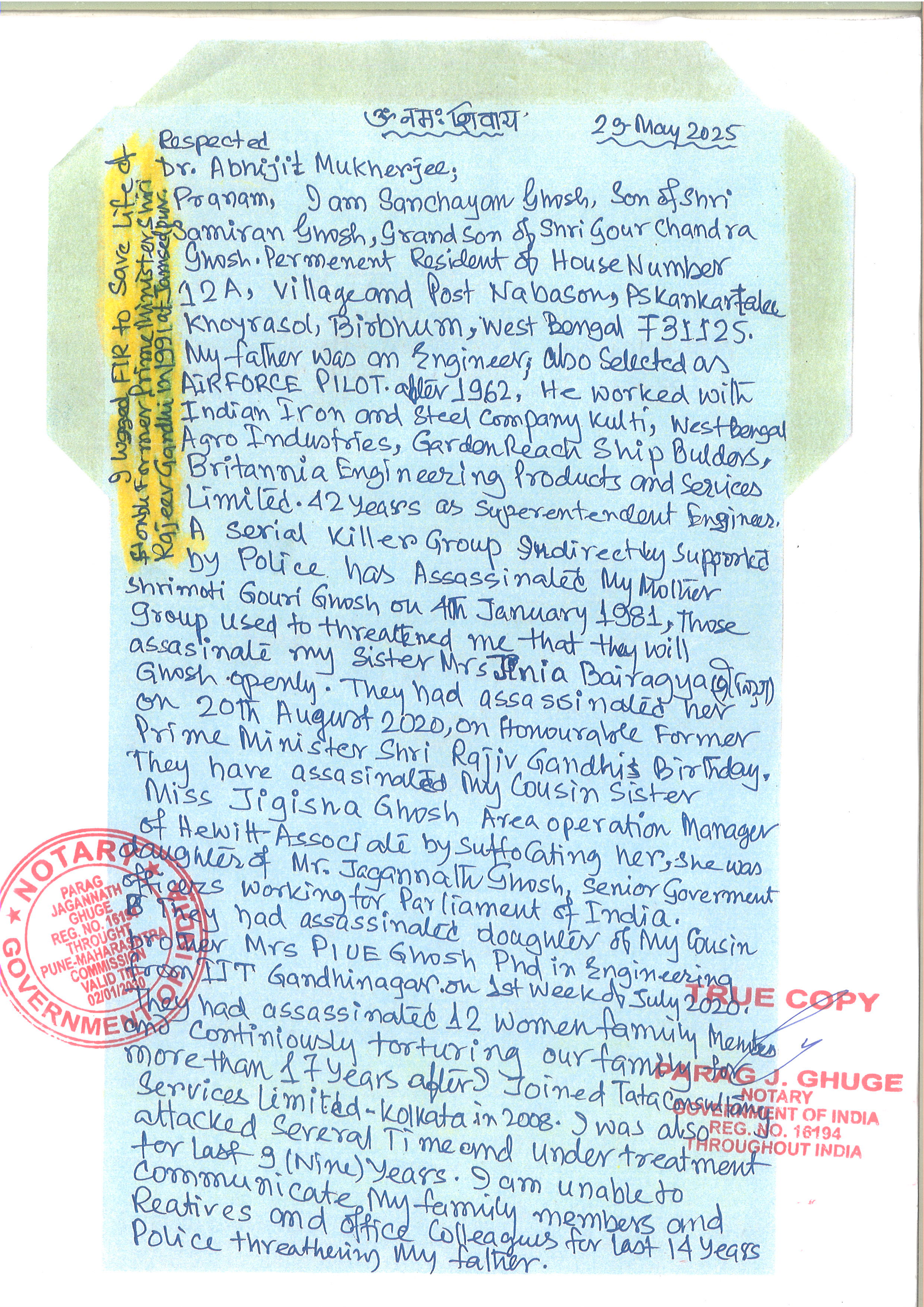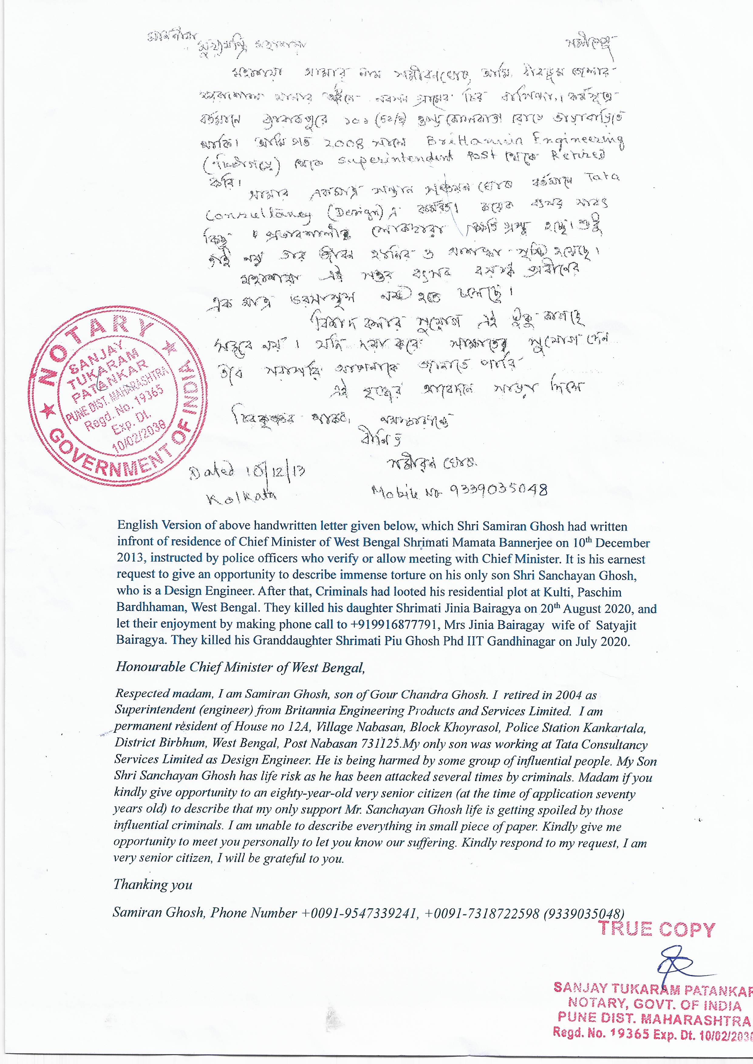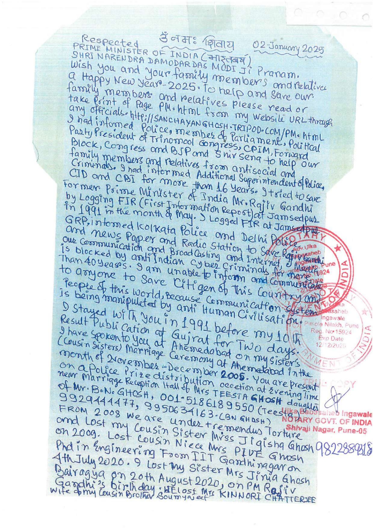 2. Conversation with Shreemoti Maneka Gandhi ji, on 25th December 2025 as My mother Burned Live on Hon CM Mamata Banerjee's Birthday, my sister Mrs Jinia Bairagya (Ghosh) hanged on Shree Rajiv Gandhi's Birthday 20th August 2020. My cousin Sister Miss Jigisha Ghosh suffocated to death, my cousin Niece Dr Piue Ghosh PhD in Engineering from IIT Gandhinagar hanged inside Gandhinagar. My Sister in Law Mrs Kinnori Chatterjee assassinated after returning from USA, my Aunty Mrs Jayashree Ghosh hanged .