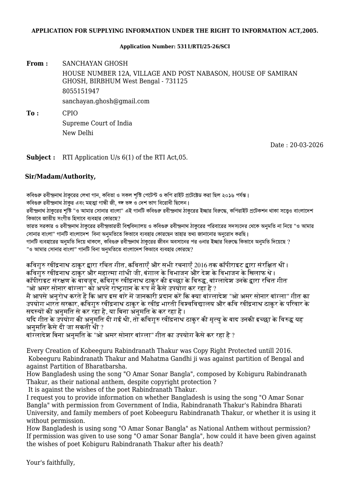 4. Conversation with Mr Godadhar Biswas ClassMate from 1993, Requesting entire people of West Bengal think and inform Prime Minister office, President office of India to get democratic Birthright, we are suffering more than 50 years inside West Bengal, Change of Political party, Change of Chief Minister, Change of Police Commissioner, does not change our situation and sufferings, looking forward for a discussion forum with common people of West Bengal with Members of Parliament, IAS officers, President office. Download Audio Conversation.